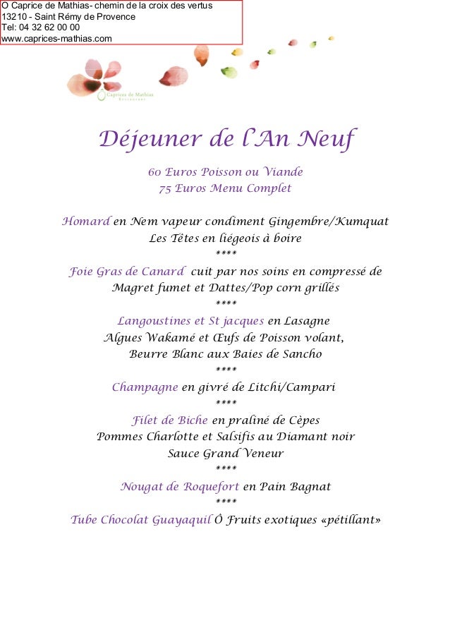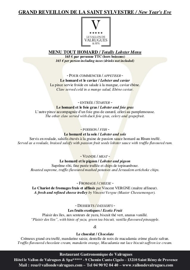 Menus De Noel Et Jour De L An A Saint Remy De Provence 2014 2015